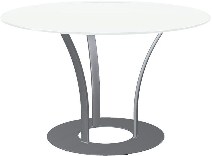 White glass tabletop with a 48" diameter.