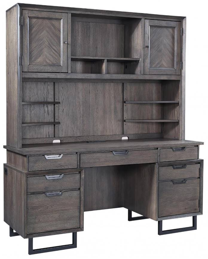Offering a relaxed contemporary look from the complex organic finish to the contrasting metal accents and hardware. Functional features make this an easy choice for your workspaces. Harper Point 66" Credenza and Hutch featured hardwoods and hickory veneers.Read More