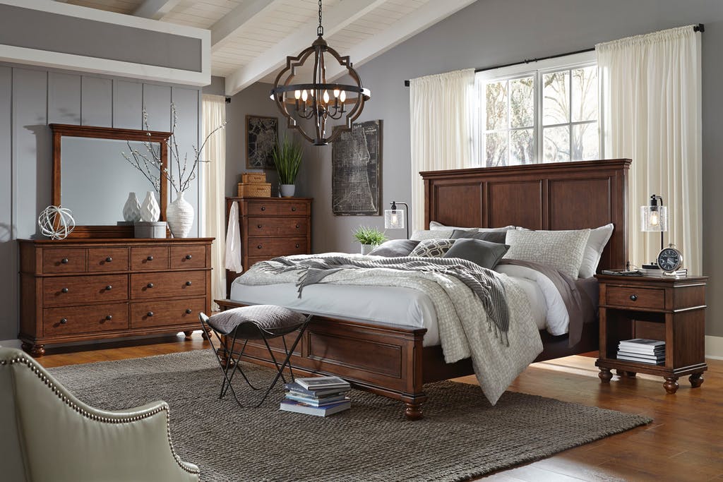 Cherry veneers and poplar solids accented with gunmetal hardware highlight this beautiful bedroom collection. “Ah” factors to improve your everyday tasks.