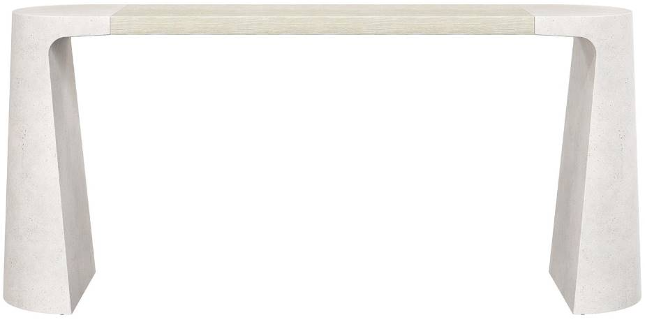 A bold structure is constructed of wood and concrete for the Prado console table. Angled and semi-circular legs make a sleek statement in cast glass-reinforced concrete in Buff finish. They support a center wood top in the Tawny finish.Read More