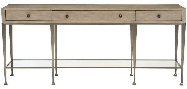 The Santa Barbara console table offers a fresh take on a traditional form. The simple, elegant design features a welded stainless steel base with eight slender, tapered legs with square feet. Oak veneers have been wire-brushed and cerused, which gives them subtle textures and lighter strokes of color in the grain.Read More