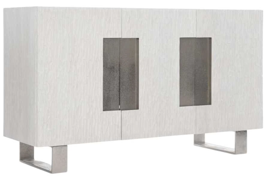 A harmony of simplicity and modernity, texture and neutrals, the Solaria buffet makes the most of form and function. Chiseled resin door fronts in a Weathered Bone finish are the perfect contrast to cast aluminum door panels and legs. The doors open to reveal impeccable storage with shelves and a drawer.Read More