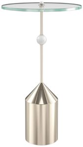 A nod to the streamlined style of a mid century candlestick, this spot table is well-scaled for conversation nooks or larger spaces designed for entertaining. A clear glass top adds to its light and reflective aesthetic, contrasted by a sculptural metal frame with a decorative stone bead and sturdy base.Read More