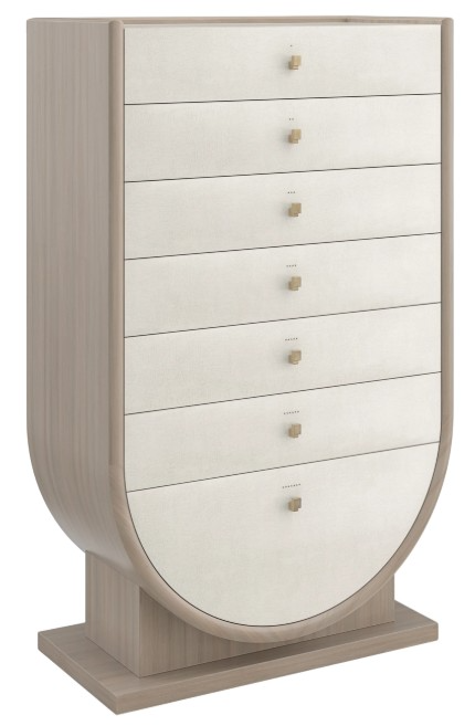 Drawing the eye with its striking shape and height, this semainier chest lets you create a one-of-a-kind, sensory experience. With a graceful form inspired by Grecian pottery, it features seven drawers, one for each day of the week, notated by corresponding brass brads and tactile hardware.Read More
