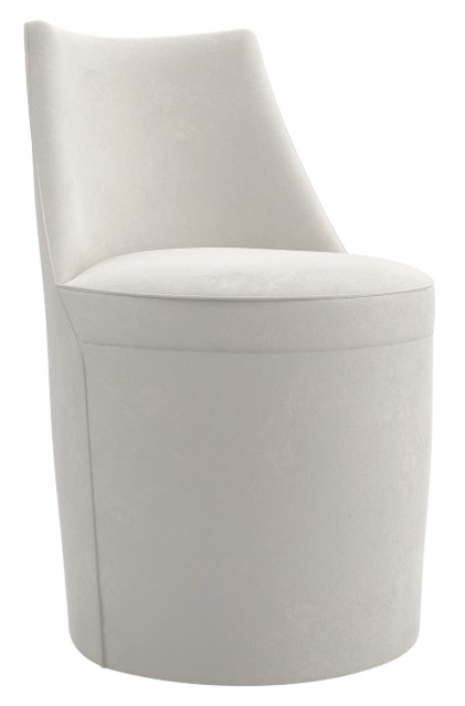 Luxe yet livable in a neutral, deep-pile microfiber, this sculptural chair introduces a sleek contemporary style to dining room interiors. Its clean modern design features a soft curve to the back and seat, with hidden casters for ease of movement to and from the table.Read More