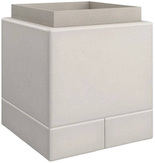 Double stitch details and gently rounded edges elevate the simplicity of the Bindi side table, crafted from stacked blocks in a luxurious taupe leather. Comes with its own elegant oak tray in a neutral Fossil finish for added function and an organic finishing touch.Read More