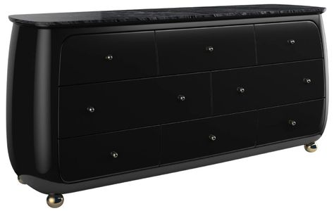 This gem of a dresser is elegance personified. A contemporized version of a classic Bombay chest, its sleek, rounded, piano-black frame is topped with highly figured black and gray stone.Read More