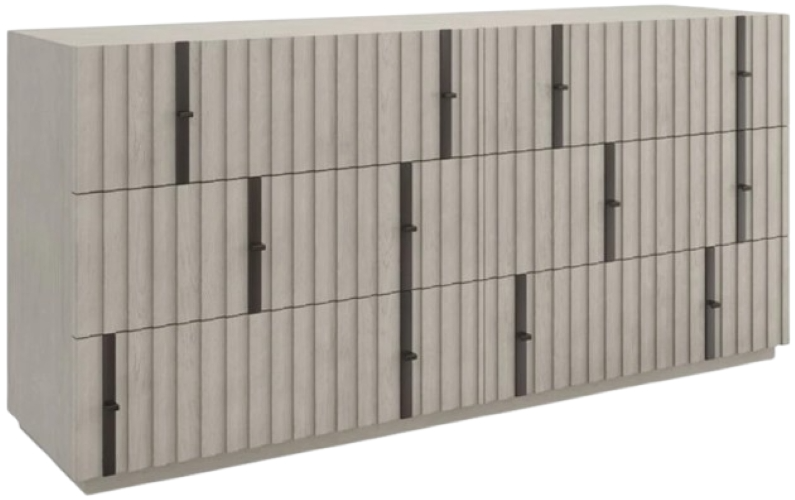 A harmonious mix of wood and metal, the Clancy dresser introduces an architectural element with layers of visual texture. Slatted details create depth and dimension, punctuated by open-grain oak in a neutral taupe finish.Read More