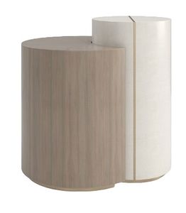 This accent end table was thoughtfully designed to accompany our Full Break cocktail table in a similar mix of materials and finishes. Simple yet sophisticated, it is comprised of two pieces: a tall cylinder in Ivory Craze with a decorative Brushed Gold inlay, and a crescent shape in Dry Martini to showcase its linear wood grains.Read More