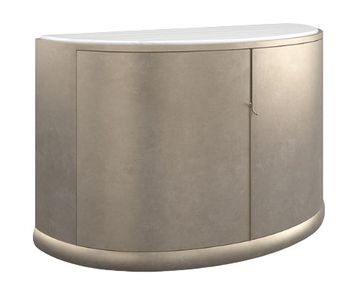 With a classic demilune shape, this shimmering chest elegantly intersects form and function. Simple yet eye-catching, its hardware is reminiscent of a vintage purse clasp–an artful reflection of its subtle sense of movement, which is enhanced by a Sunrise Frost leaf finish.Read More