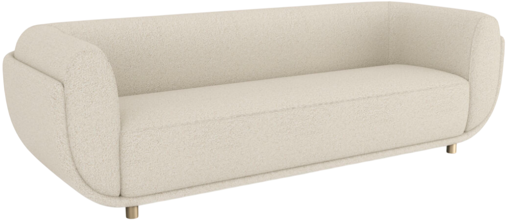 The serenity of this fully-upholstered sofa starts with the use of calming ivory mélange performance bouclé fabric surrounding a generous bolster back and deep, long seat. The back and seat are nestled into a bouclé-wrapped frame that curves around the back and sides and along the bottom of the piece creating a nesting effect.Read More