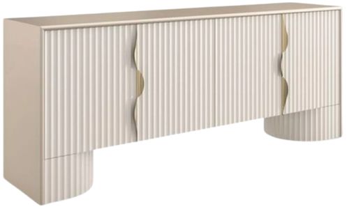 Case finished in Sparkling Argent four doors with fluted fronts in almond milk