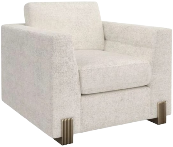 A perfect alignment of texture, material and design intention lends a soft-lined yet sophisticated style to seating areas. Dressed in an oatmeal melange woven fabric with subtle rust threading, its comfortable design features channel-tufted arms and a loose back cushion, propped by a faux-leather-wrapped, counter balance capped in Champagne Gold.Read More