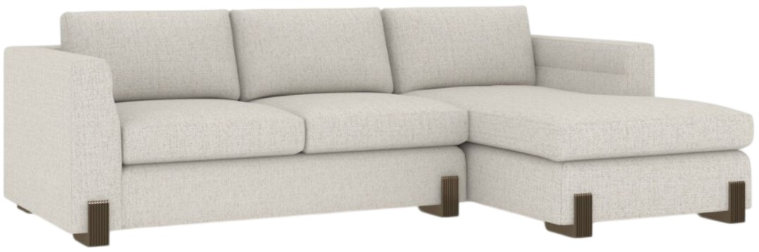 This 2-piece sectional with a right arm facing chaise features brushed gold accents and oatmeal upholstery. Designed for both comfort and elegance, it offers spacious seating and a refined look, making it a standout piece for relaxing or entertaining.Read More