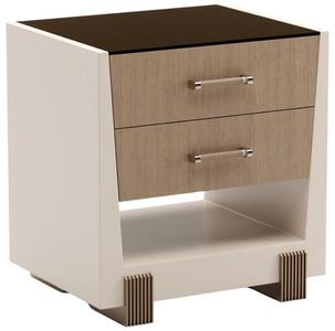 Add a subtle touch of modern elegance with the counter balance small nightstand. Its smoked bronze glass top, coupled with chocolate koto and brushed gold finishes, provides both style and functionality.Read More
