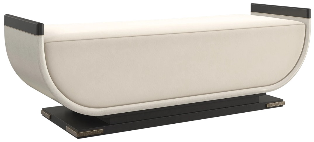 With a classic form inspired by an ancient Greek ceremonial vessel, this end of bed bench brings an exquisite mix of detail and materiality. Features a plush upholstered front and seat, embraced by a curved poplar frame in an Ivory Craze crackle finish.Read More