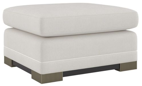 Extend the comfort of our Deep Retreat chair and sectional collection with this clean-lined ottoman. Crisp tailoring and braided leather welt artfully accentuate its simple, yet sophisticated silhouette, fully upholstered in a softly textured chenille performance fabric.Read More