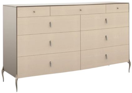 Poised to make an elegant first impression, this generous dresser introduces a refined mix of natural materials, with soft color palettes and a shimmering silver finish. Features nine soft-close drawers with fronts in Vanilla Cream, a soothing contemporary finish that brings to light the decorative character of figured sycamore.Read More