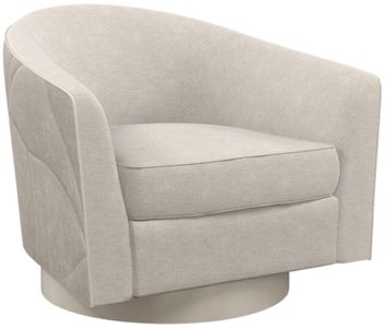 An all-around standout, this softly curved swivel chair introduces a free-flowing, organic style to seating areas. A quilted ginkgo leaf pattern fanning out along the back creates repetition and subtle movement, accented by a cream-colored contrast welt and plinth base wrapped in pearl vinyl.Read More