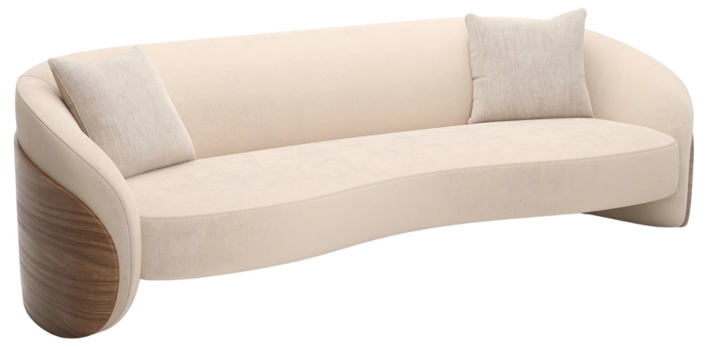 Indulge in luxurious repose with the Fleur Wood Back Sofa. Beautifully upholstered in ivory faux mohair and framed with the subtle sophistication of Porcini finish, it gracefully anchors any room with elegance.Read More