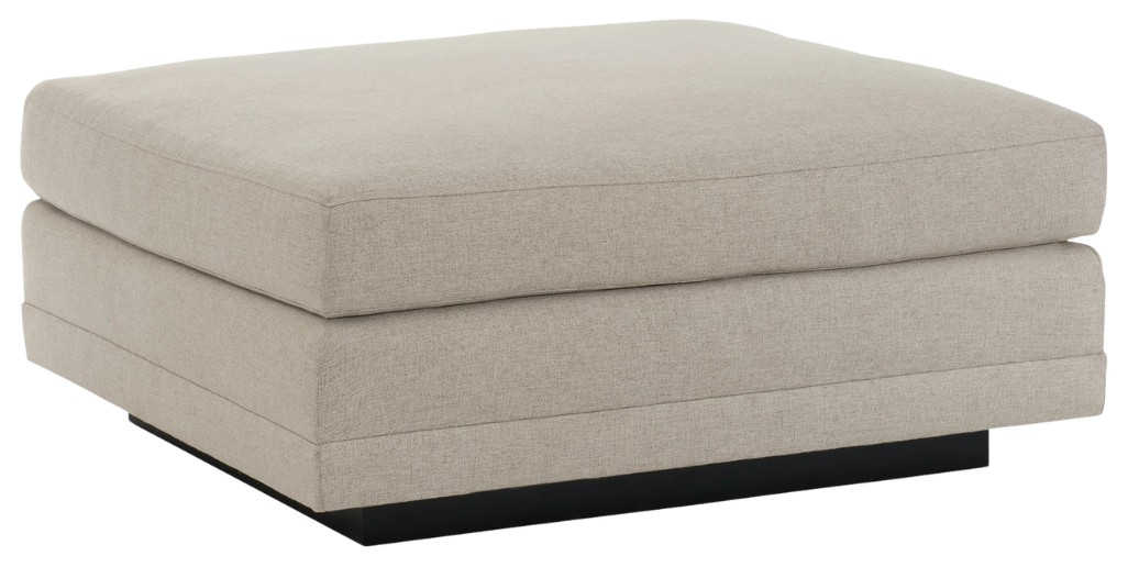 Casually elegant, this fully upholstered ottoman is designed to complement the modern fusion sectional. Perfectly sized, it’s tailored to perfection in a neutral, menswear-inspired look with a textured tweed pattern that’s touchably soft. A recessed wood plinth base in simply black completes this piece distinctive aesthetic style.Read More