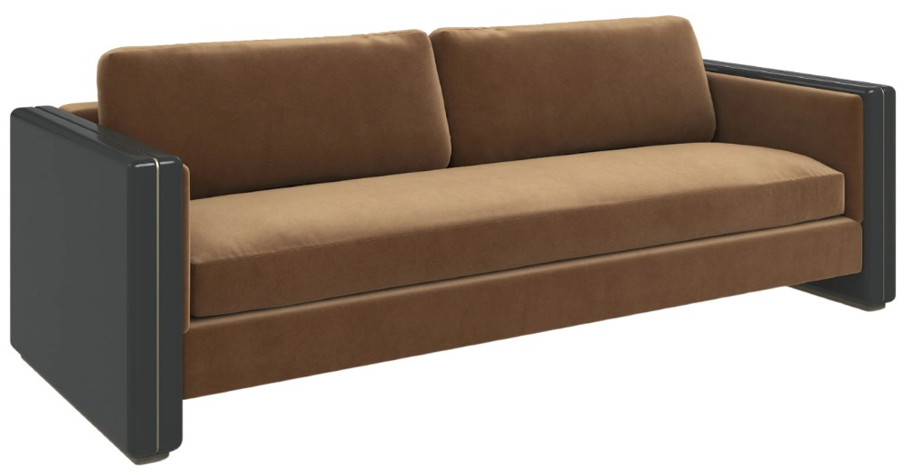 Mid-Century style has been updated with sumptuous materials and finishes. This large, square-armed piece showcases a fully-upholstered seat in a luxurious Chestnut Mohair blended fabric. The inviting bench seat features a single loose Springdown cushion and two loose blend down pillow backs in matching fabrics.Read More