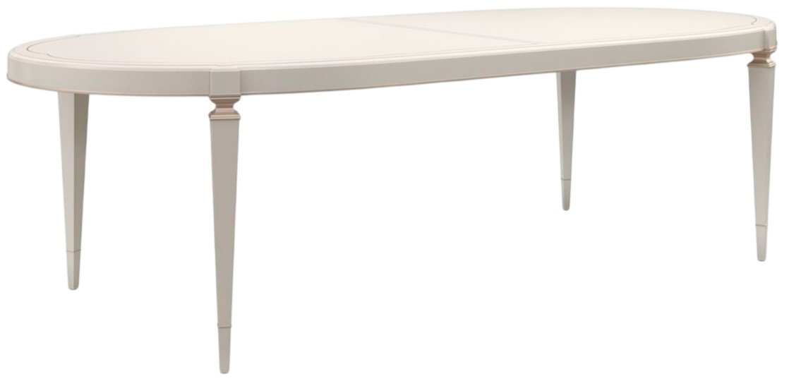 Table finished in radiant pearl with sparkling argent highlights