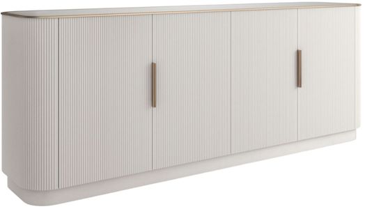 It is hard to find a sideboard with a touch of femininity, but this graceful design creates a place for your favorite china and linens. Its rectangular silhouette with soft corners features vertical fluted detailing highlighted in a lustrous palette of matte pearl with unique whisper of gold hardware.Read More