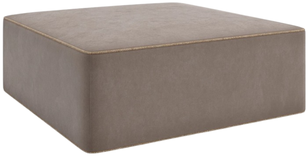A plush prop or chic extra seat, this ottoman introduces a clean lined modern form with endless function. Designed to configure with our Marbella sectional, or style on its own. Fully upholstered in a warm gray faux nubuck fabric, with strategically placed seams and a saffron-colored contrast welt.Read More