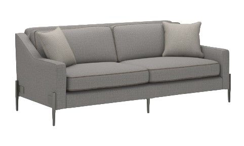 Updated and relevant, this fully upholstered sofa is suspended on thin, tapered metal legs in Smoked Stainless. This piece features a track arm and lower back. This silhouette is upholstered to perfection in a grey wool blend woven with a contrasting tan leather welt.Read More