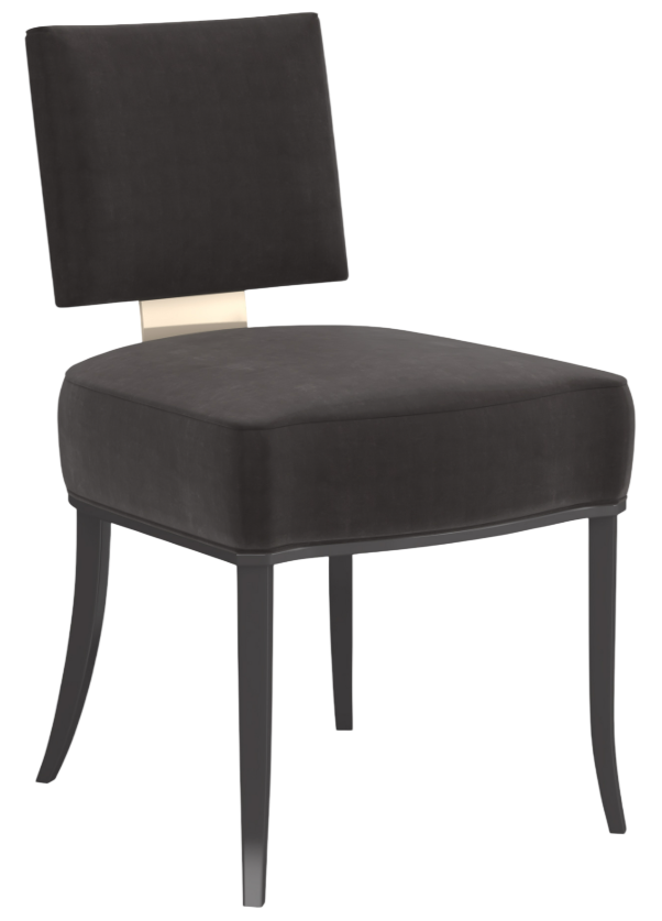 This contemporary side chair takes on dramatic style when you view the wide, whisper of gold panel that shines off its back. This is a low, klismos chair with truly polished appeal.Read More