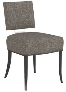 This contemporary side chair takes on dramatic style when you view the wide, lightly brushed chrome panel that shines off its back. This is a low, klismos chair with truly polished appeal.Read More