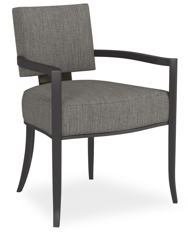 This contemporary arm chair takes on dramatic style when you view the wide, brushed deep bronze panel that shines off its back. This is a low, klismos chair with truly polished appeal.Read More