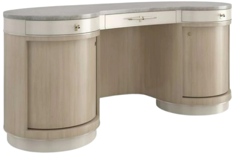 A timeless tribute to our love affair with beauty, Vanity Fair recalls a time when getting ready for a night out required a special table for dressing. An extravagant mix of materials accentuates its classic, kidney bean shape, topped in gray Armani marble and supported by Koto veneered columns.Read More