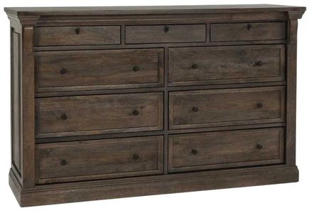 Elegant and hand-finished, this sophisticated dresser features the energetic grain pattern of natural mango wood combined with traditional design elements including a beveled edge and ornate cornices. A decorative center key adds a refined touch to the look, making this piece an ideal choice for adding style and storage to any classic setting.Read More