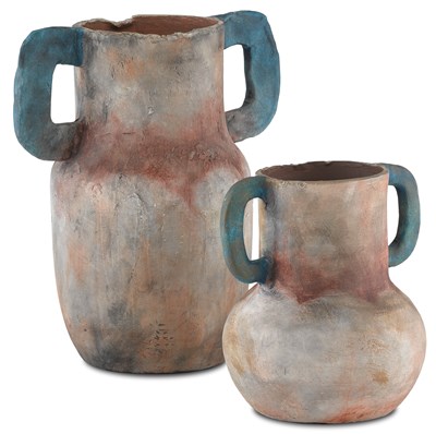 Our Acadia Vase Set includes two distressed vases that are hand-thrown and hand-colored in the sand, teal, and red hues. The rudimentary feel of these designs makes these decorative vases read as antiques that were handmade in a bygone era.Read More