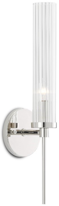 Slender in style, the Bellings Nickel Wall Sconce has a pencil-thin body and tall striated glass canister shade. Made of metal in a polished nickel finish, the silver wall sconce is the very definition of simplicity but with a sophisticated complexity to its design.Read More