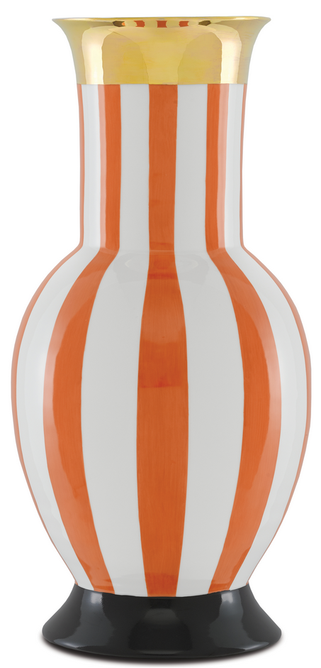 The design of our De Luca Coral Stripe Large Vase was conceived by Frederic de Luca, a famous gallerist who opened the ultra-iconic store En attendant les Barbares in Paris during the 1980s. The lauded painter agreed to create a series of porcelain vases for Currey & Company that were inspired by his graphic work. This bold white and orange vase is one of six designs. We also have a smaller vase in this design.Read More