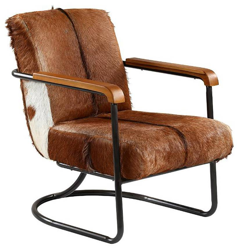 Antique black iron frame with black/white hide and wood armrests