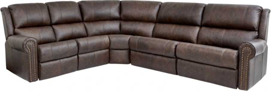 The Rebecca reclining sectional features optional nailhead trim, rolled arms and fits at least 5 people comfortably.Read More