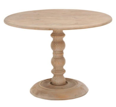 The Bella Antique Chelsea 42" Round Dining Table shown in smoke gray pine features reclaimed white pine and veneer top, turned solid wood pedestal.Read More