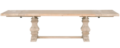 The Bella Antique Monastery extension dining table shown in smoke gray pine features reclaimed white pine, two removable extension leaves and trestle base.Read More
