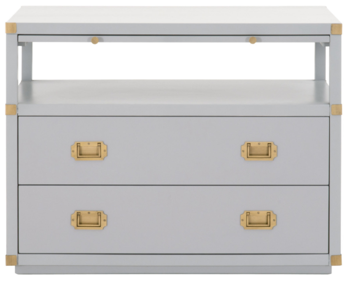 The Bradley Nightstand shown in Dove Gray and Brushed Gold.Read More