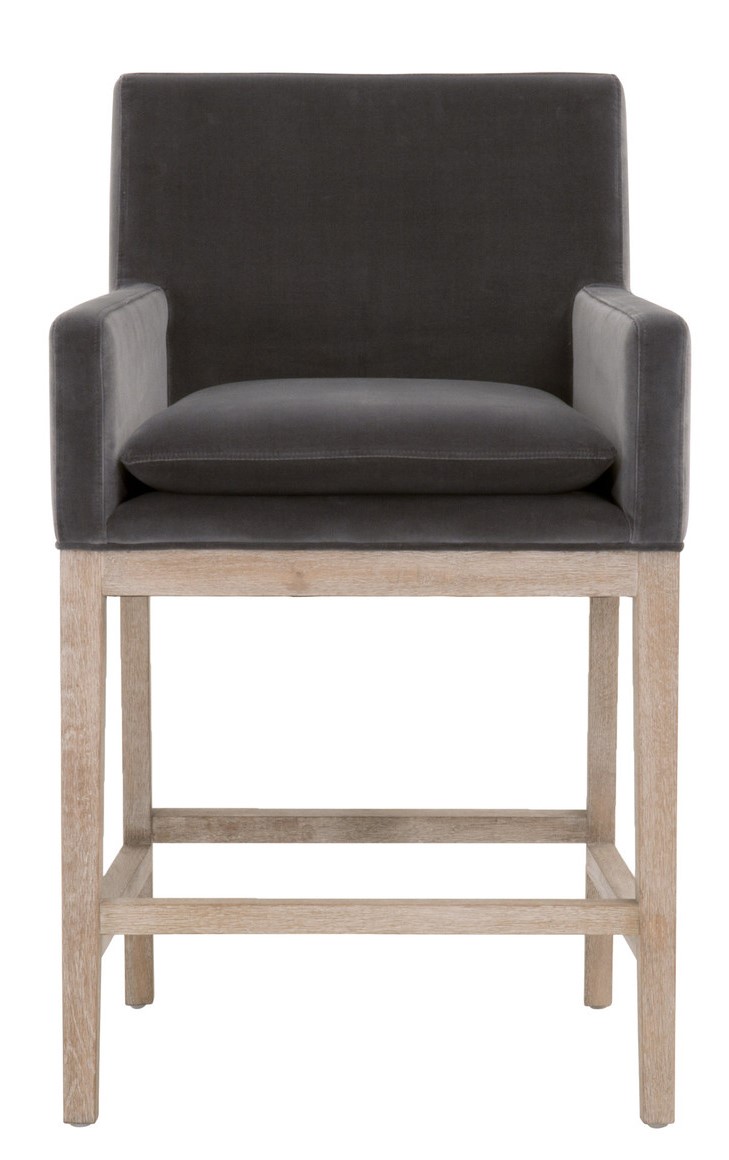 The Drake Dark Dove Velvet Arm Chair features an attached knife edge and a solid wood base.Read More