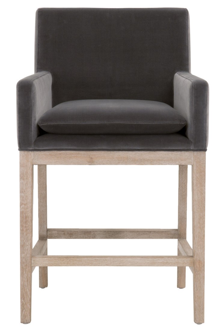 The Drake Dark Dove Velvet Arm Chair features an attached knife edge and a solid wood base.Read More