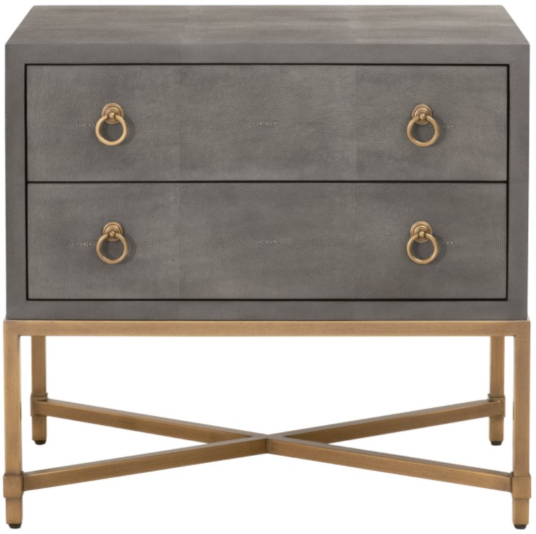 The Strand Shagreen Nightstand shown in Gray Shagreen and Brushed Gold with faux shagreen patterned resin.Read More