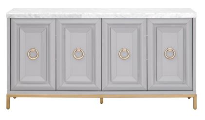 The Atticus Media Sideboard shown in white carrera marble, dove gray and brushed gold features a genuine carrera marble veneer top.Read More