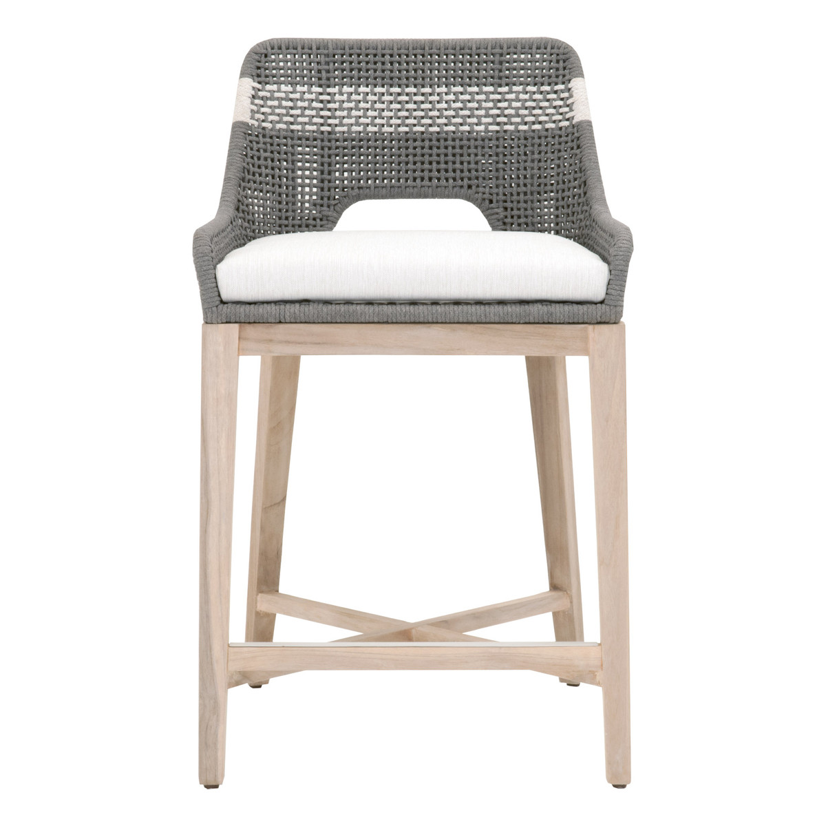 The Tapestry Outdoor Counter Stool is shown indove flat rope white speckle stripe, white speckle in gray teak.Read More