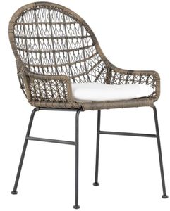 Clean, contemporary shaping and an updated weave transform all-weather wicker into something modern. This high-texture dining chair is supported by a contrasting black iron base, with a white seat cushion for comfort. Cover or store indoors during inclement weather and when not in use.Read More
