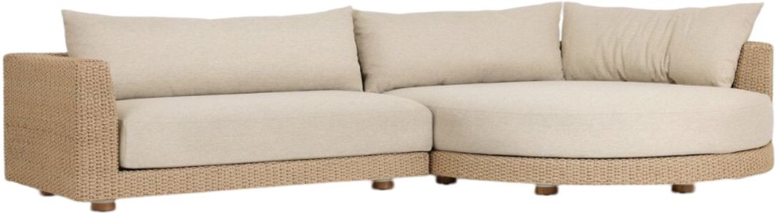 Streamlined comfort with an upscale modern look. This outdoor sectional has a woven frame that offers depth to a clean shape with a chaise. Monochromatic color pairing with knife edge back and box seat cushions adds to the simple silhouette and mixed material look.Read More